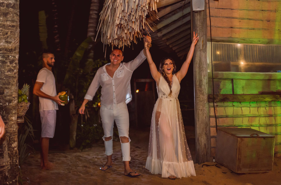 Foram dois dias de muita festa, na sexta feira os noivos preparam um lindo luau no Uxuá bar um barzinho super charmoso em uma das lindas praias de trancoso. Os convidados todos de branco e com pé na areia deram aquele charme no luau que rolou noite adentro com a banda Cafe pequeno.