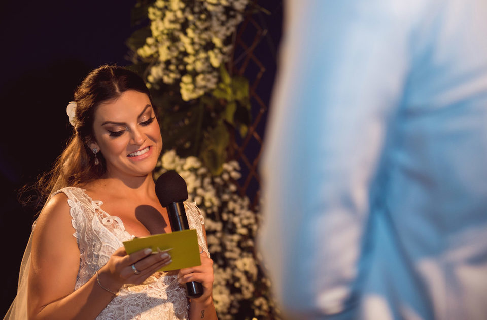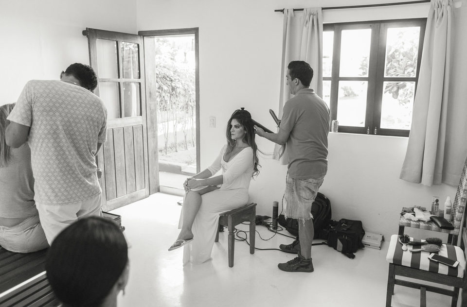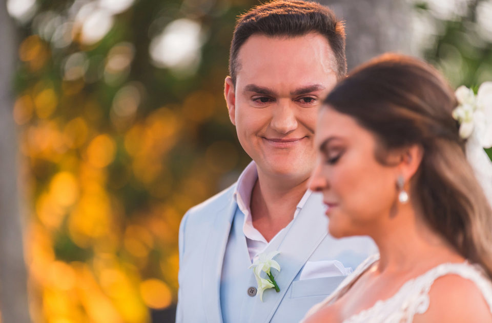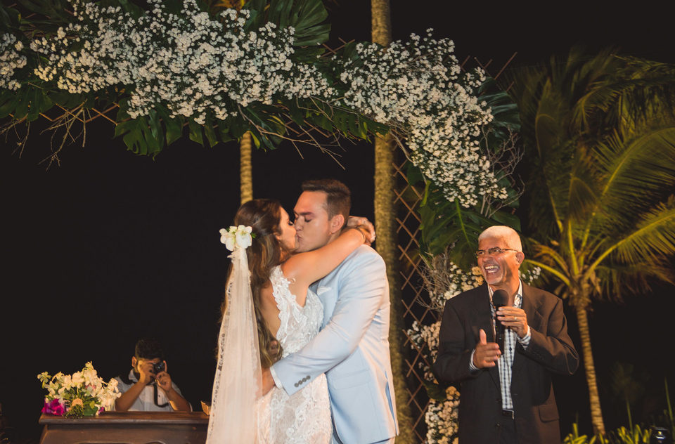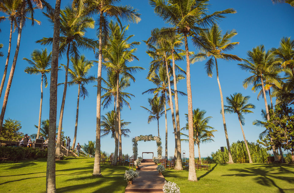 Agora no sábado, dia do casamento..... Ahhhh esse dia foi maravilhoso, muitoo locoo!!! Começando pelo lindo sol e céu azul que um dia antes estava tímido em aparecer mais no sábado veio com tudo e fez o dia ser ainda mais incrível. Era como se fosse um presente de lá de cima para os noivos e para todos o convidados que vieram para esse Destination Wedding em Trancoso. A cerimônia foi mágica a começar pela beleza do lugar... que lugar lindo!! Uma celebração emocionante, os noivos super apaixonados e felizes trocaram olhares e carinho durante toda a cerimônia, estava tudo muito lindo.