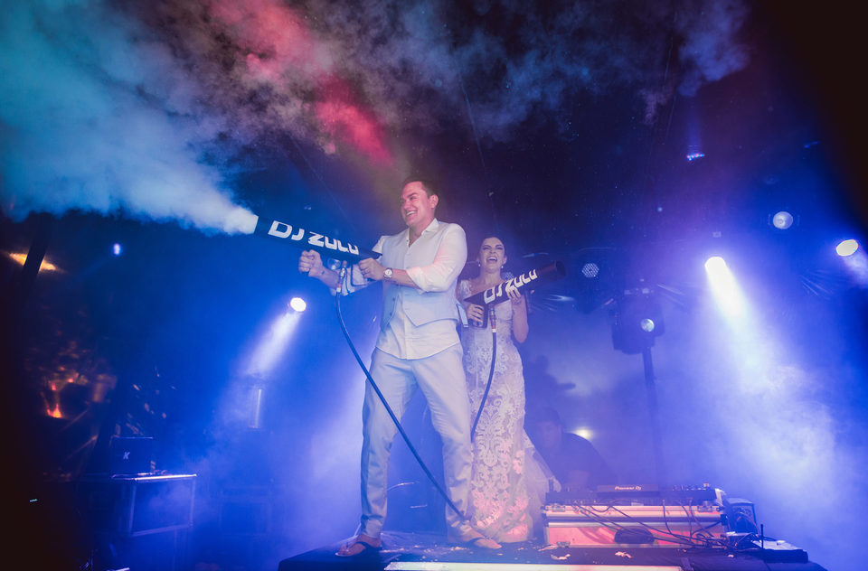 E a festa!?!?! Ahh que festa!!!! Cara os noivos abriram a festa com a banda Café pequeno que mandou demais, demais e demais... E quando todos acharam que tinha acabado eis que surge o DJ Zulu o cara das Pistas de Dança! Foi um verdadeiro show, muita musica boa, fumaça, e fogos agitaram a galera até altas horas!!!!!